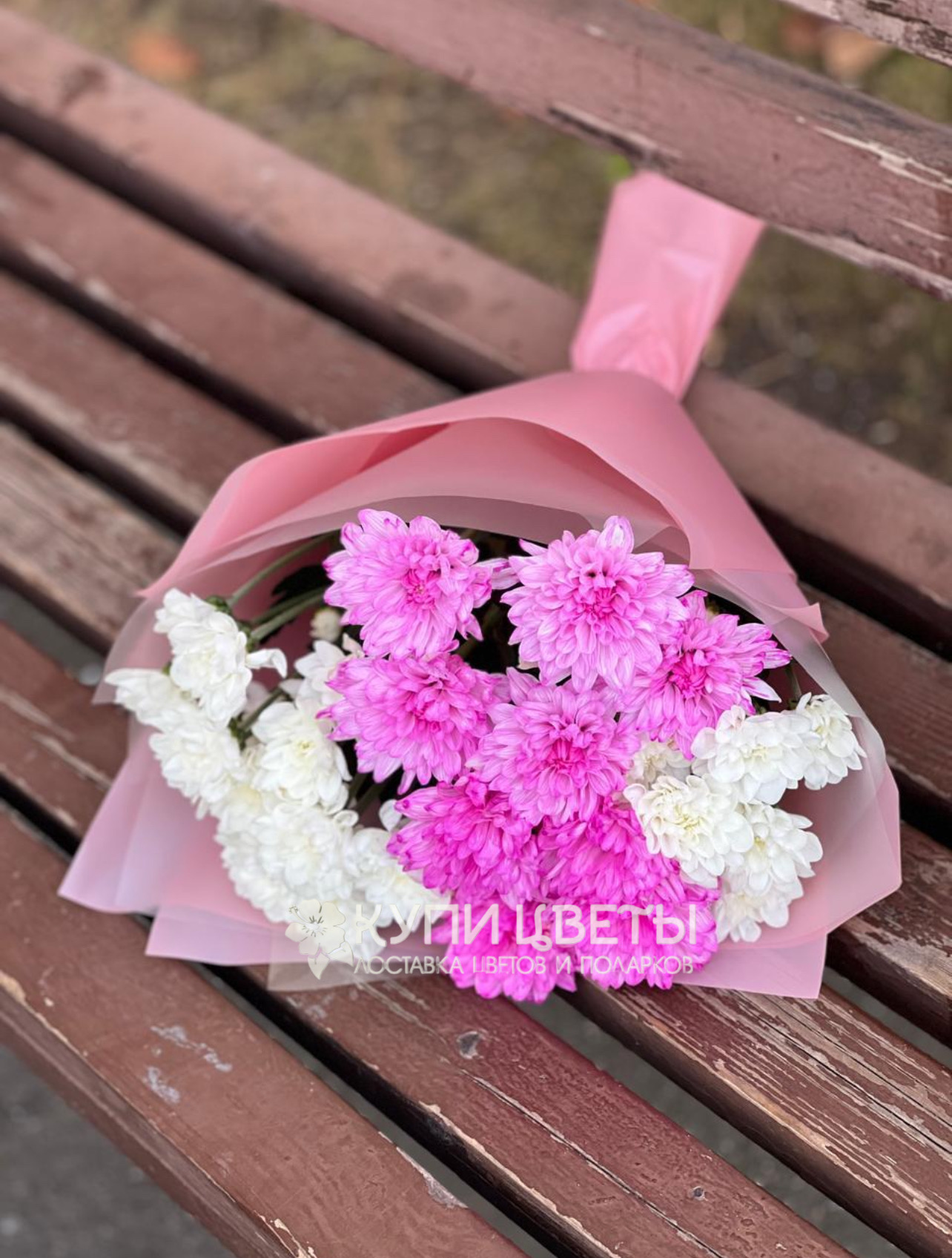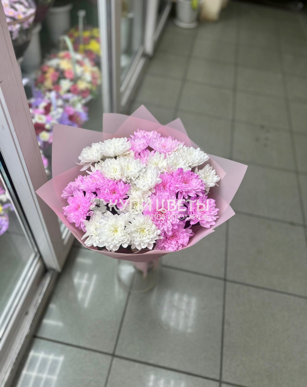 Состав букета: Кустовые хризантемы,упаковка,лента