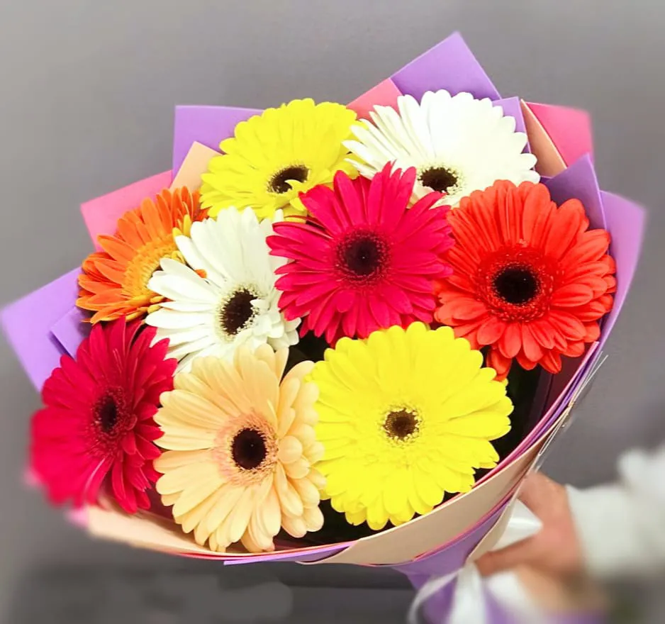 • Делюкс - гербера - 15 шт., упаковка, лента