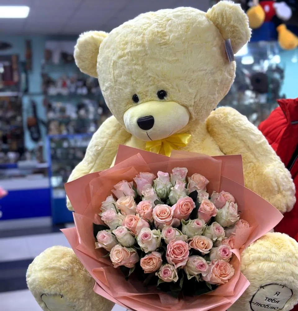 Подарите себе и своим близким мгновения счастья с букетом из розовых роз и мягкой игрушкой — эта комбинация несомненно сделает любой день особенным!