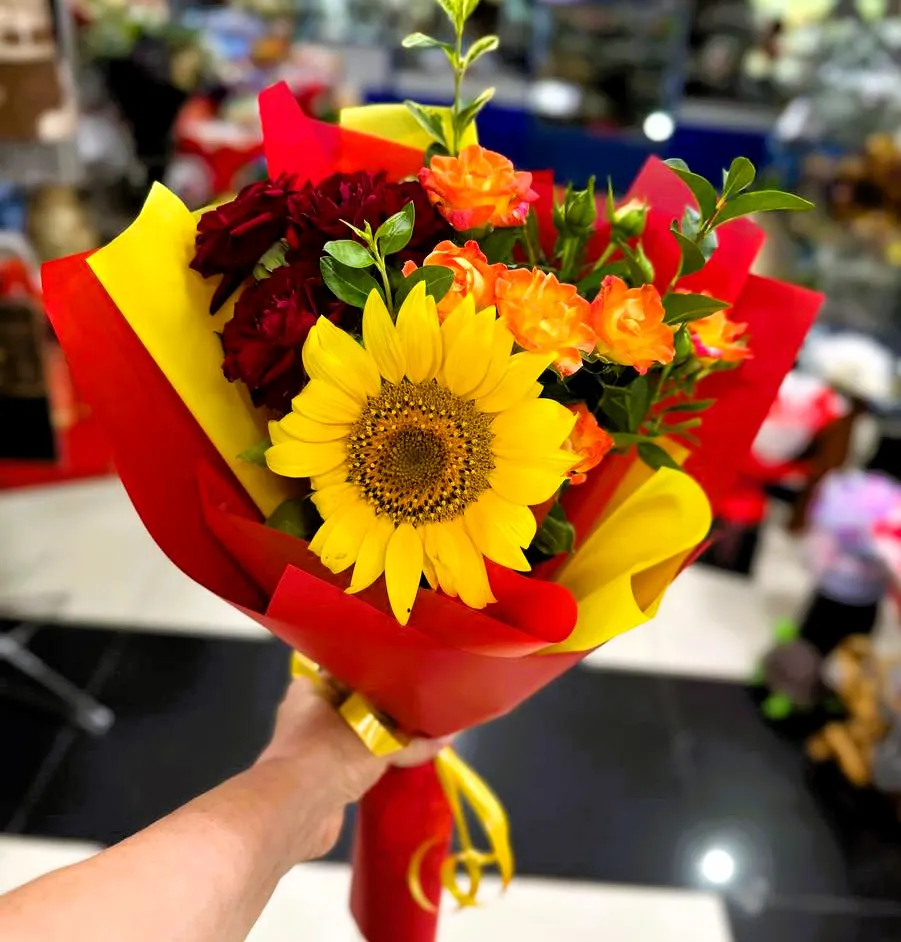 Выбирая букет из подсолнухов и кустовых роз, вы дарите не просто цветы, а целую историю — историю о тепле, любви и счастье. Этот букет обязательно станет центром внимания и будет долго радовать глаз своим ярким и гармоничным сочетанием.