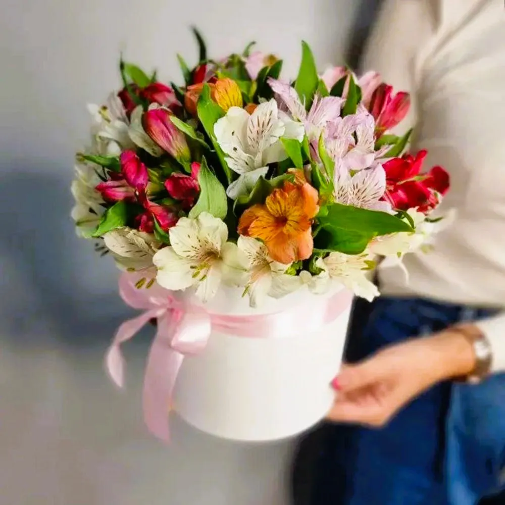 Альстромерии в шляпной коробке – это изысканный способ выразить свои чувства. Нежные лепестки, словно шепот любви, и элегантная упаковка создают неповторимый подарок. Подарите шляпную коробку с альстромериями, чтобы сказать "Я люблю тебя" без слов. Идеальный сюрприз для особого случая.