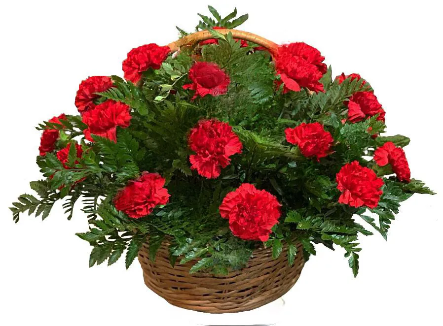 Гвоздика, зелень, корзина