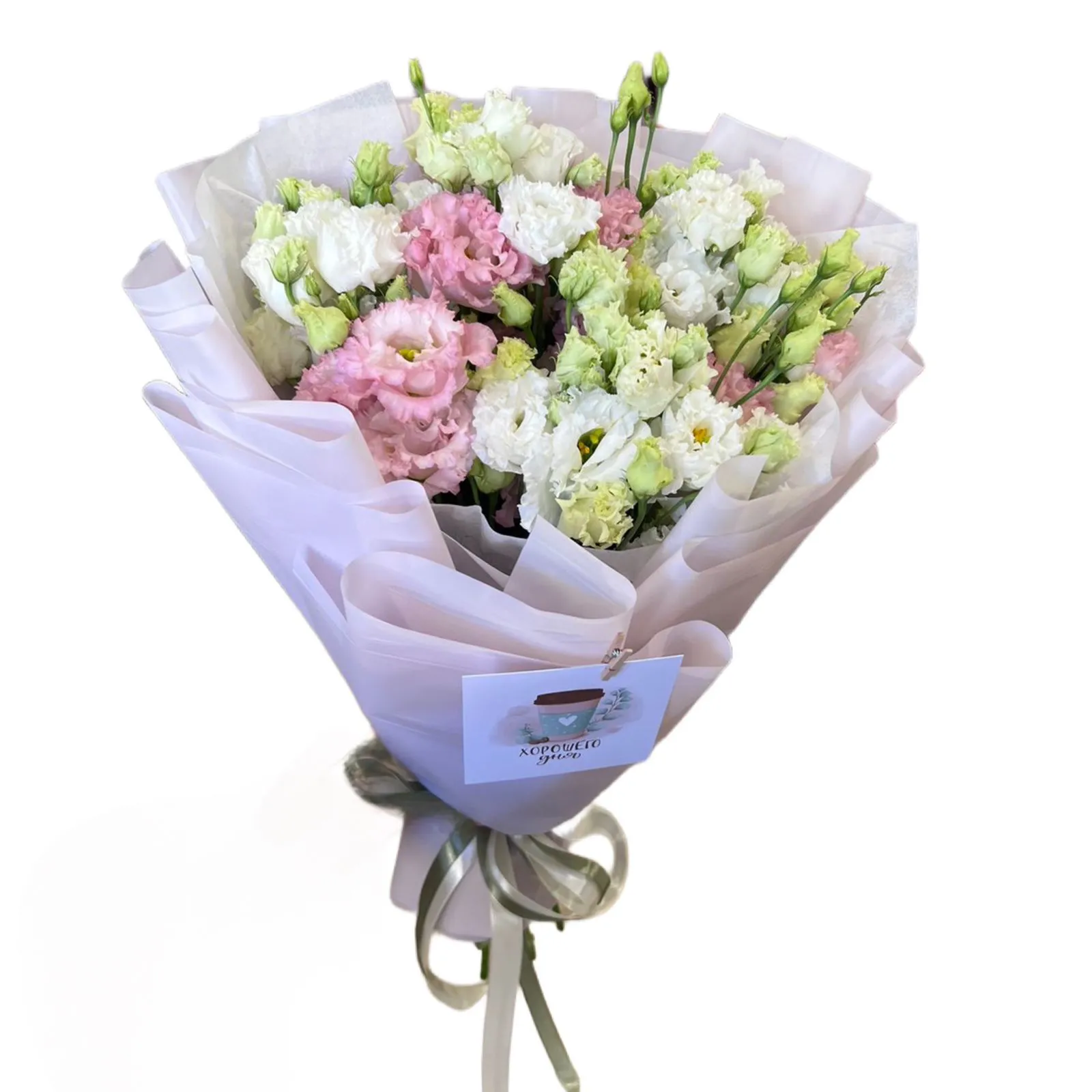 • Средний - эустома - 11 шт., зелень, упаковка, лента